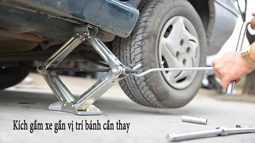 Sau khi tất cả các đai ốc được nới lỏng thì bạn cần kích gầm xe lên cao, đảm bảo lốp xe cách mặt đất ít nhất 2cm hoặc đủ khoảng trống để bạn có thể dễ dàng tháo lắp bánh xe.